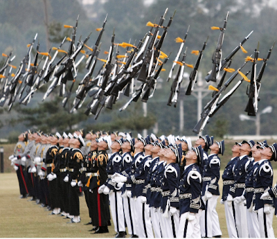 South Korean honor guards perform during a welcoming ceremony before the 13th annual Chiefs of Defense meeting in Seoul. The meeting of high-ranking officers in Asia-Pacific region is scheduled for five days.